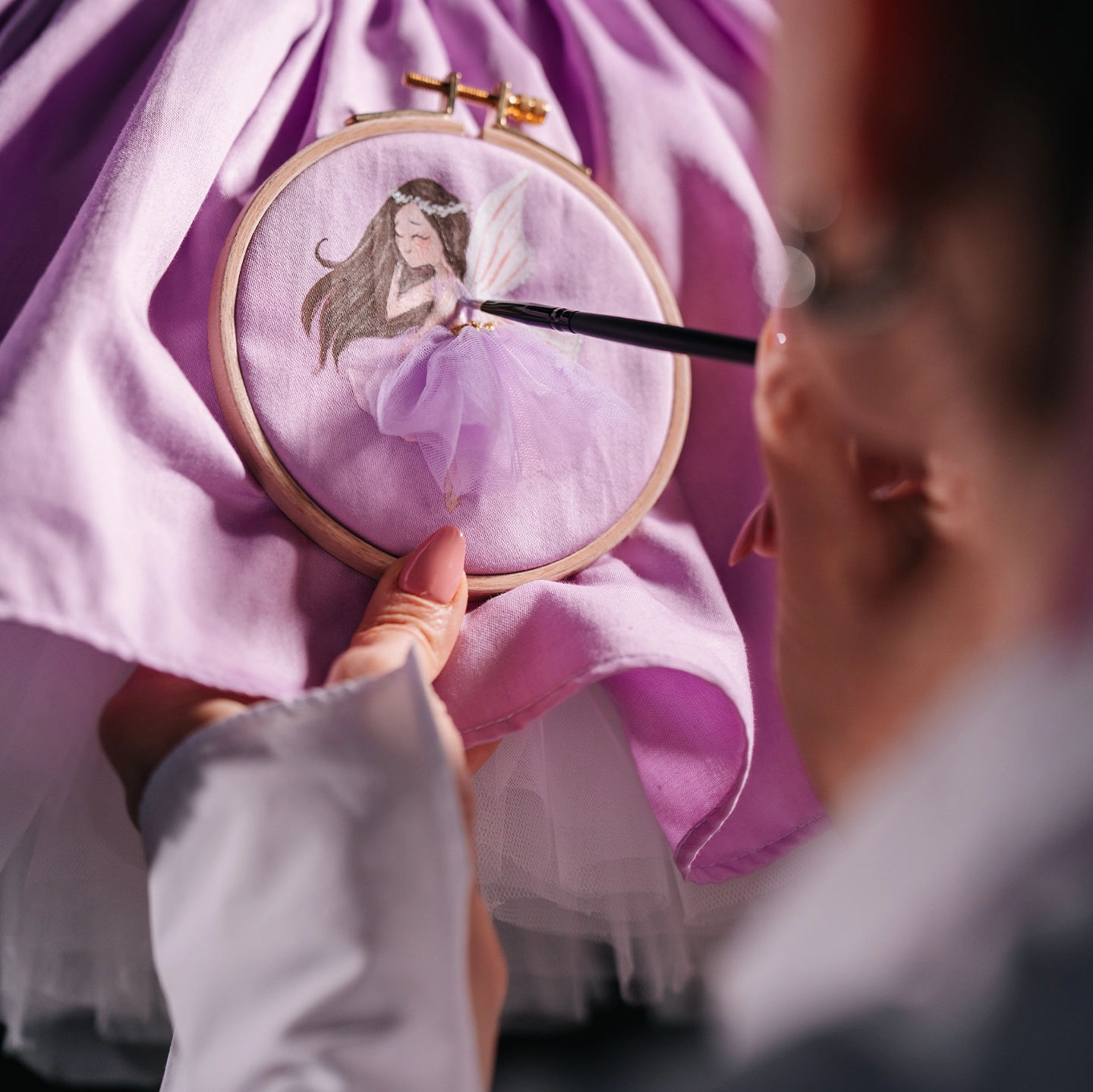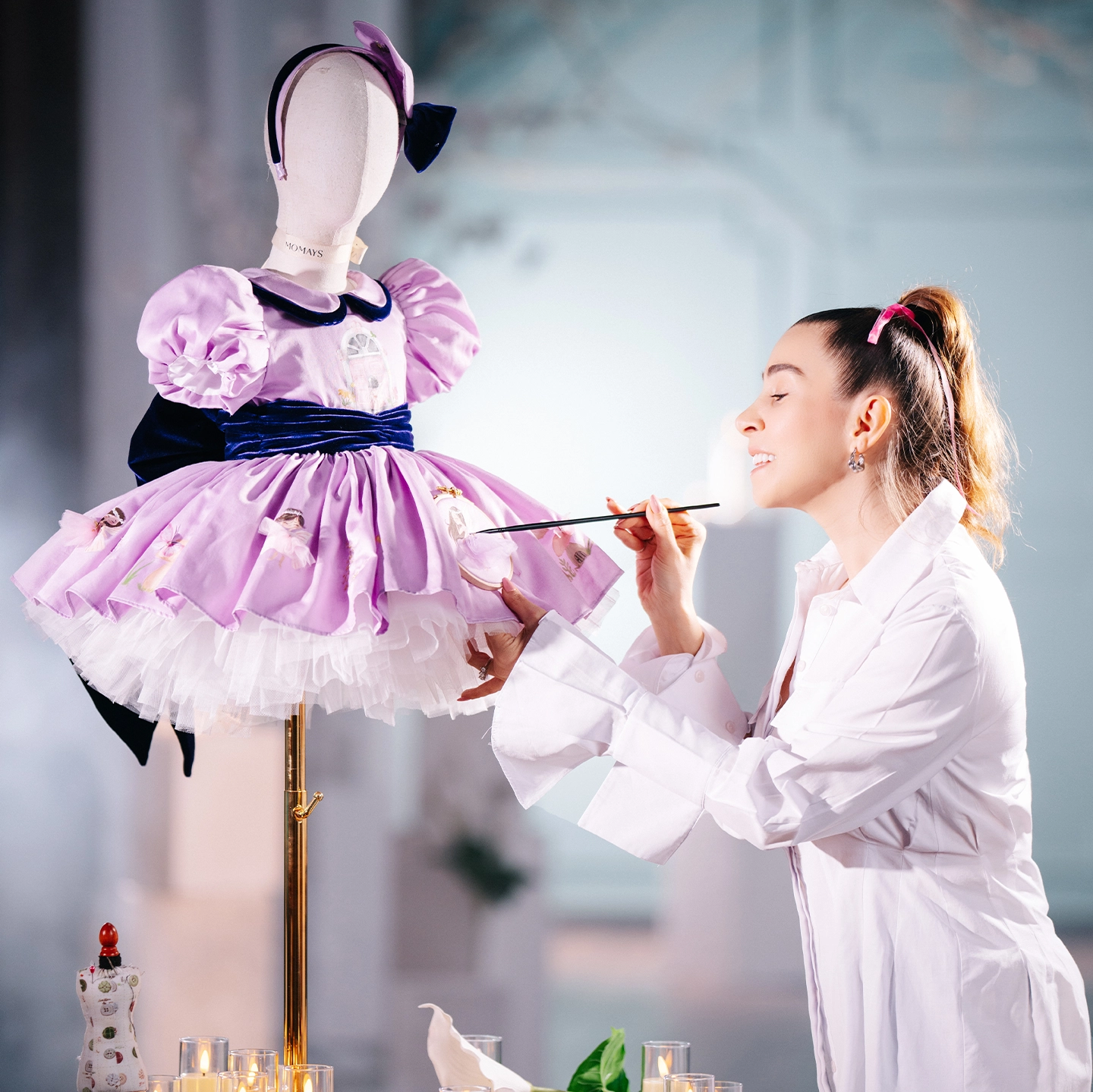 The theme is designed exclusively for children with special illustrations; fairy illustrations are hand-embroidered onto the dress in this design. The inward-curved sleeve design offers comfort for children with sensitivity, while the puffed form gives the dress a fairy-tale volume.
