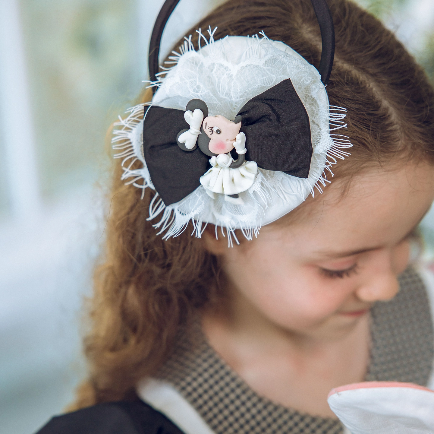 Inspired by Mini Mouse, this piece offers a fairy-tale look with the elegance of pure silk and the romantic effect of French lace.