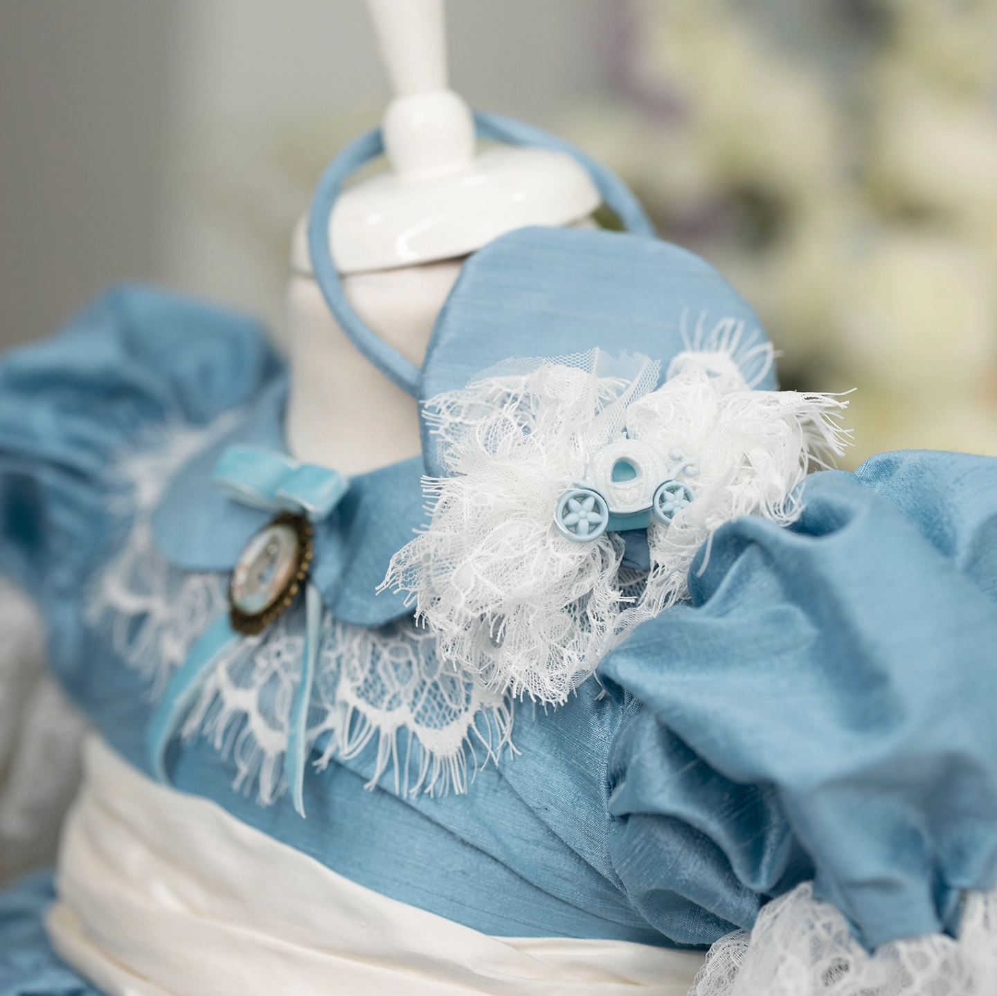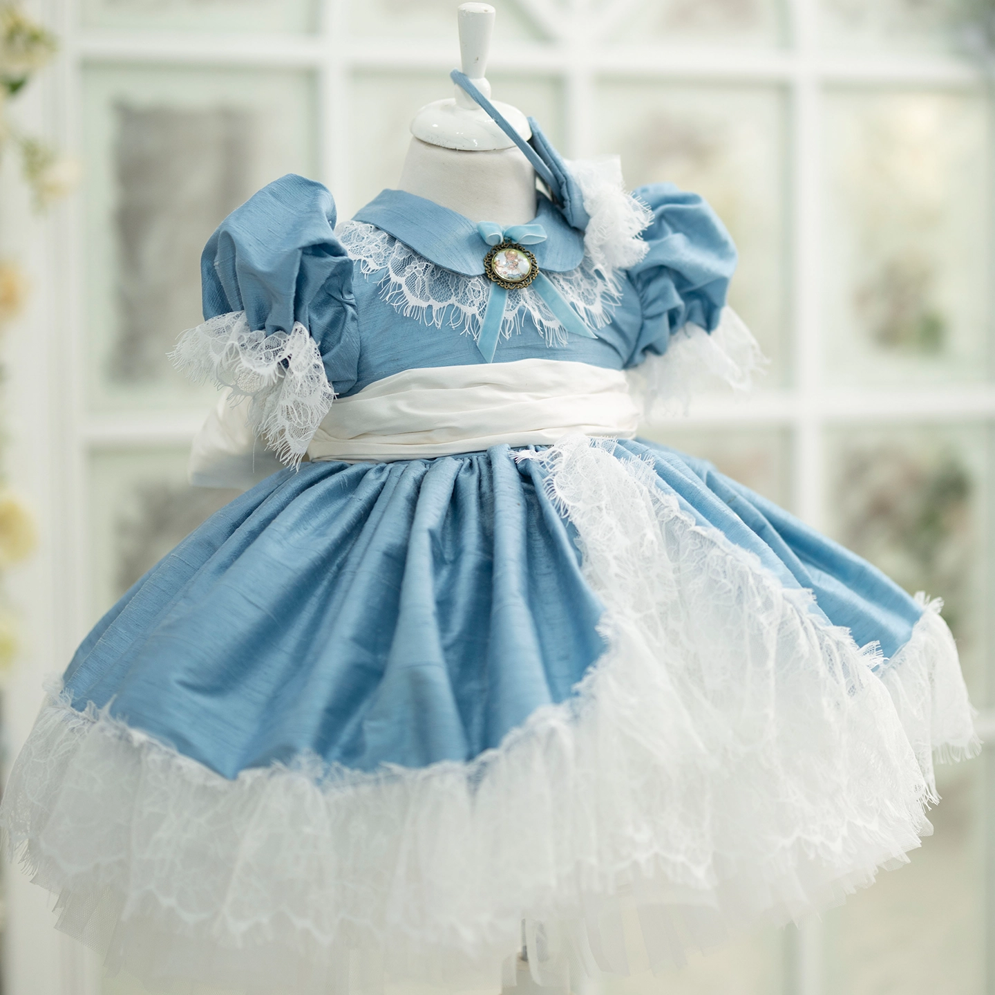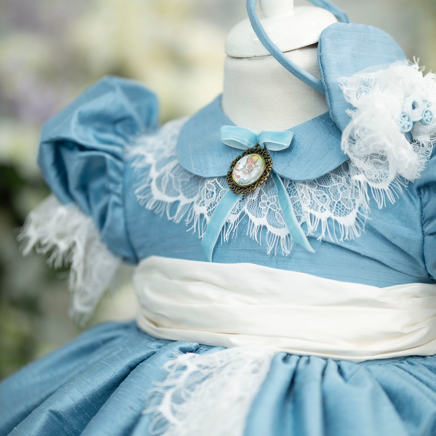 Etek uçlarındaki ve tülün arasından zarifçe çıkan Fransız danteliyle romantik ve rafine bir siluet sunar. %100 ipek dokusu ve pamuk astarıyla hem zarafet hem konfor bir arada.